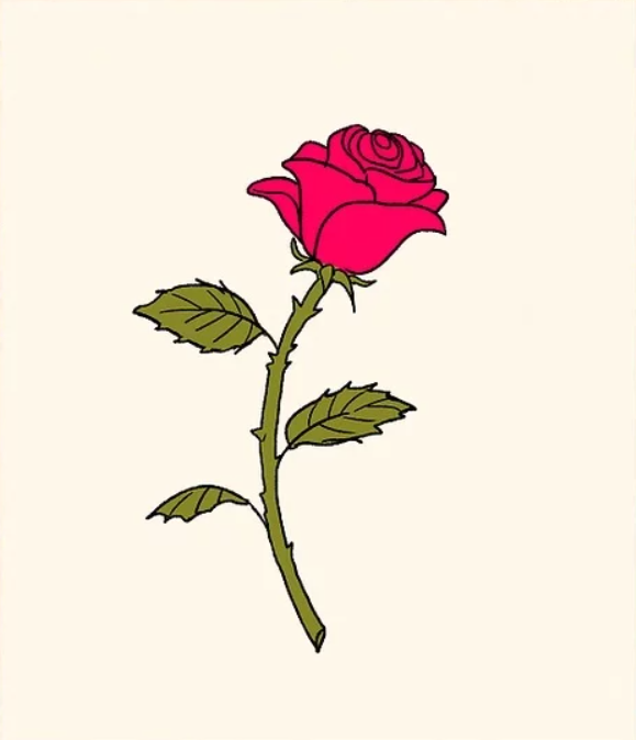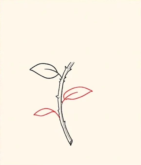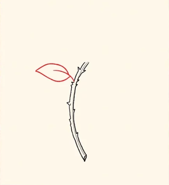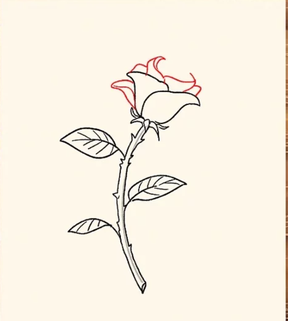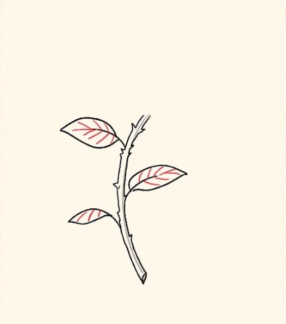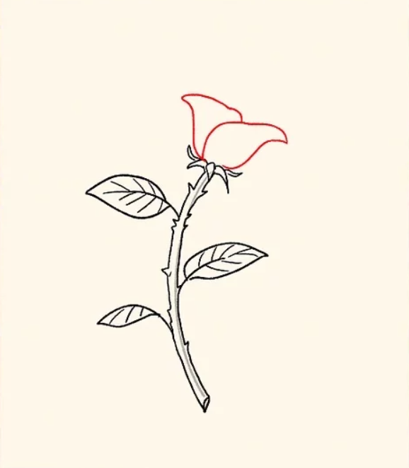 Bu yöntem, gülü sapı ve yapraklarıyla birlikte çizmeyi öğretir.
