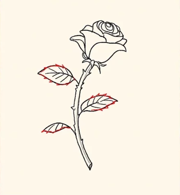 - Yaprakların kenarlarını hafif tırtıklı çizin.